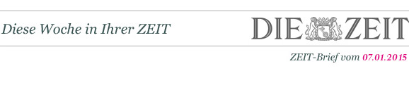 Sabine Rückert, stellv. Chefredakteurin, über die aktuelle Ausgabe: Zum Video » | |  | | | | | | | | Titelthema  | | Ruhm: Verkannte Genies – Einige große Geister werden berühmt, und ihr Werk gilt der Nachwelt als bahnbrechend. Andere begabte Künstler und deren Werke sind dagegen in Vergessenheit geraten. Woran liegt das? Ein Plädoyer für die Klassiker, denen der große Erfolg versagt blieb. | | | | | | | | Politik  | | China: Sie haben Miao – Mehr als 12 Wochen schon ist die chinesische Assistentin der ZEIT, Zhang Miao, in Haft. Wie sie in die Mühlen von Pekings Staatssicherheit geriet und welche Erfahrungen die Pekinger Korrespondentin der ZEIT mit den chinesischen Behörden machte. | | | | | | | | Dossier  | | Libyen: Parlament auf der Flucht – Nach der Diktatur Gaddafis sollte in Libyen die Demokratie beginnen. Doch die Islamisten verloren die Wahl und griffen zu den Waffen. Die Abgeordneten flohen in ein Provinzhotel. Dort debattieren sie jetzt die Frage: Wie lässt sich der Bürgerkrieg verhindern? | | | | | | | | Wirtschaft  | | Griechenland: Messerscharf gerechnet – Gerät Griechenland in die Hand der linken Reformgegner? Europas Politiker denken schon darüber nach, wie die nächste Regierung in Athen zu befrieden ist. Kann die Euro-Zone in ihrer jetzigen Form überleben? | | | | | | | | Wirtschaft  | | Einwanderung: »Was uns da blühen kann« – Ist die Migration ein Verlustgeschäft? Wie viel qualifizierte Zuwanderung brauchen wir? Ein Gespräch mit dem streitbaren Starökonomen Hans-Werner Sinn. | | | | | | | | Wissen  | | Ernährung: Das Geheimnis des billigen Öls – Bestes Olivenöl hat seinen Preis. Warum aber ist das Lebensmittel bei deutschen Discountern so günstig zu haben? Zu Besuch bei Spitzenfabrikanten und Massenproduzenten in Süditalien. | | | | | | | | | | ANZEIGE  | | Das Buch für ZEIT-Liebhaber Ein Buch, fast so groß wie DIE ZEIT selbst, das die 400 wichtigsten Titelseiten von 1946 bis heute in sich vereint. Vervollständigt wird es durch eine DVD-ROM mit sämtlichen ZEIT-Artikeln. Eine einzigartige Reise durch die Geschichte der ZEIT! Jetzt bestellen >> | | | | | | | | | | | | Feuilleton  | | Roman: Frankreich als islamischer Staat – Auch der Westen träumt von der Wiederkehr des Patriarchats: »Unterwerfung« heißt Michel Houellebecqs Satire unserer Zukunft. | | | | | | | | Reisen  | | Indien: Die Affen rasen durch die Stadt – Im indischen Shimla haben die Primaten die Herrschaft übernommen. Die Stadt, die auf mehreren Hügeln im Wald liegt, war früher Sommersitz der britischen Kolonialregierung. Heute haben sich hier schätzungsweise 20.000 Primaten breit gemacht. Eindrücke aus dem Affenzirkus. | | | | | | | | Chancen  | | Bildung: »Wir lassen nicht locker« – Gelobt und gescholten: Sachsens Schulen sind ganz vorn in den Naturwissenschaften, aber auch bei den Abbrecherquoten. Ein Gespräch mit Brunhild Kurth, der sächsischen Kultusministerin. | | | | | | | |